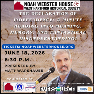 This program is co-hosted by the Noah Webster House & West Hartford Historical Society, West Hartford 250, and the West Hartford Town Historian.